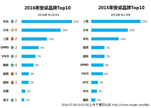 **手机市场份额的局面也发生了**些改变。IDC今年4月发布的**手机季度跟踪报告中显示,华为、OPPO、vivo、魅族相比去年同期有较为明显的涨幅。相反,三星、联想和酷派则出现了排名下降。